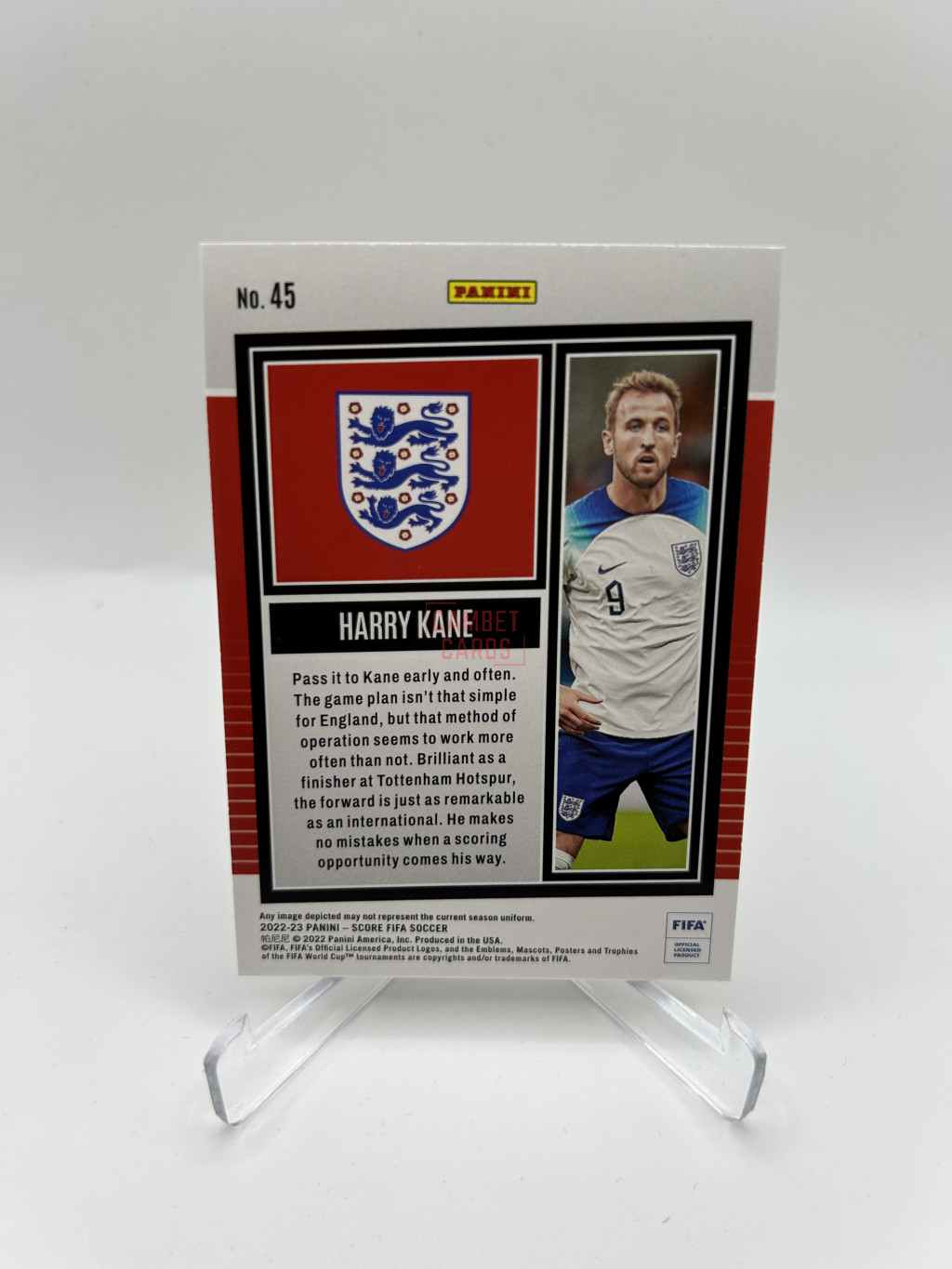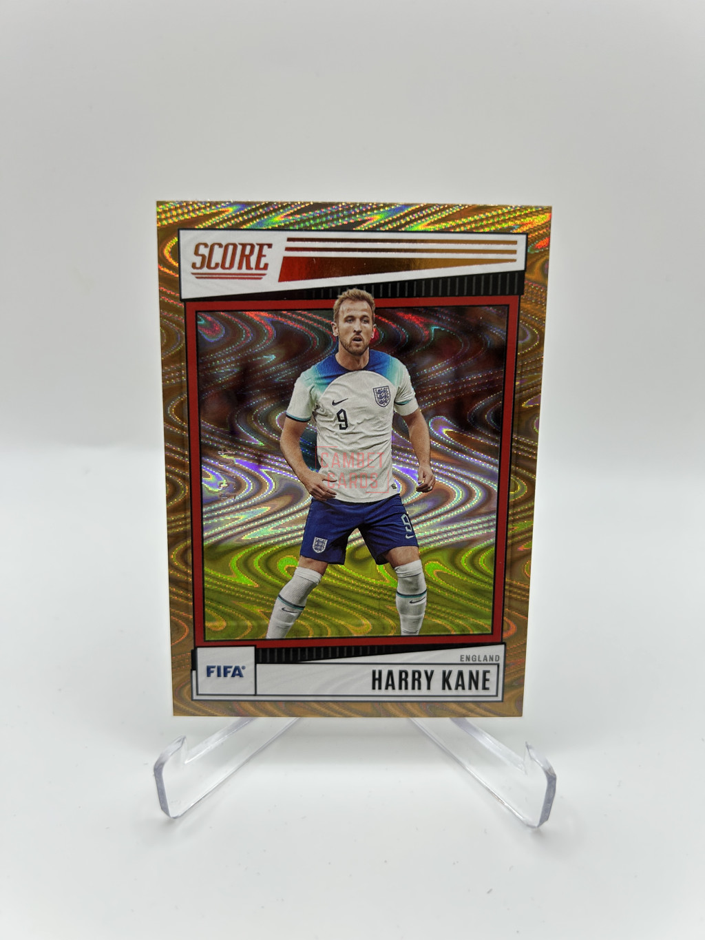 Harry Kane Gold /55 (parallel) kártya az angol válogatott mezében a 2022-23-as Score FIFA szériából. Látványos színvilág, kiváló állapot, remek választás gyűjtők számára.